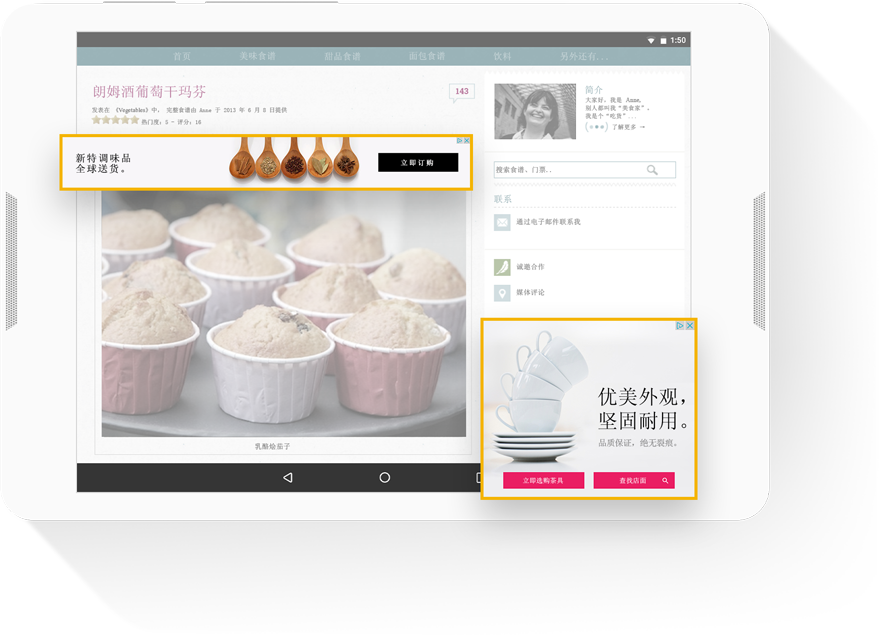 广告格式支持:HTML 5、图片、视频或嵌入的表单