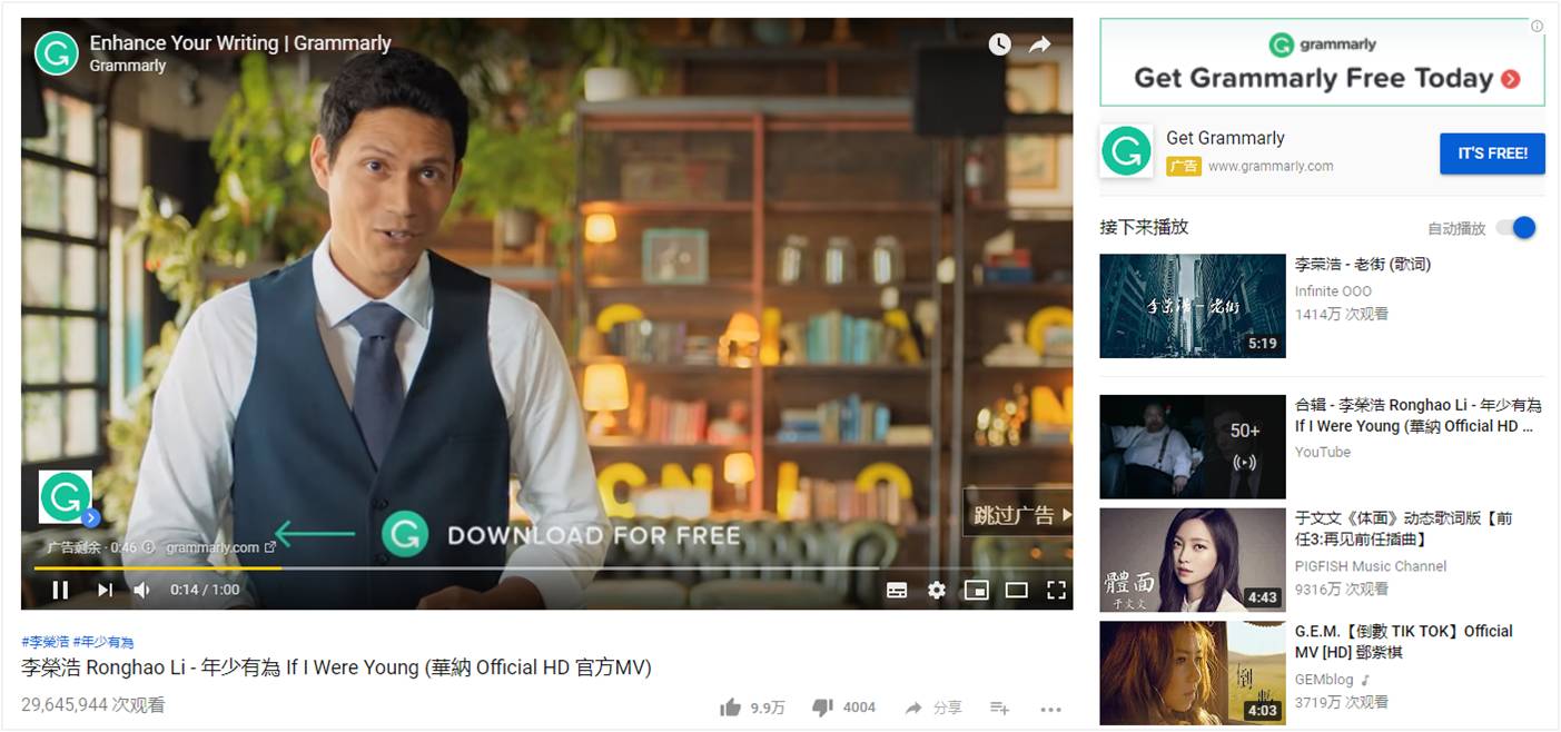 ② 广告格式:其他 YouTube 视频前中后播放,5s 后可选择跳过广告
